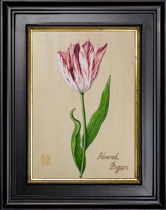 The “Admirael Bogars” is a striking tulip from the historical Tulipmania of the 17th century. This ‘Semper Augustus-type tulip’, with its unique red and white stripes, was one of the most valuable varieties of its time.
