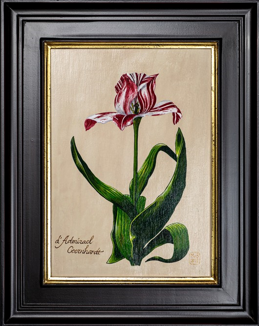 This tulip named “d’ Admirael Coornhardt” is named after Dirck Volckertszoon Coornhert (also Coornhard and Coornhardt) a prominent figure from Dutch history.