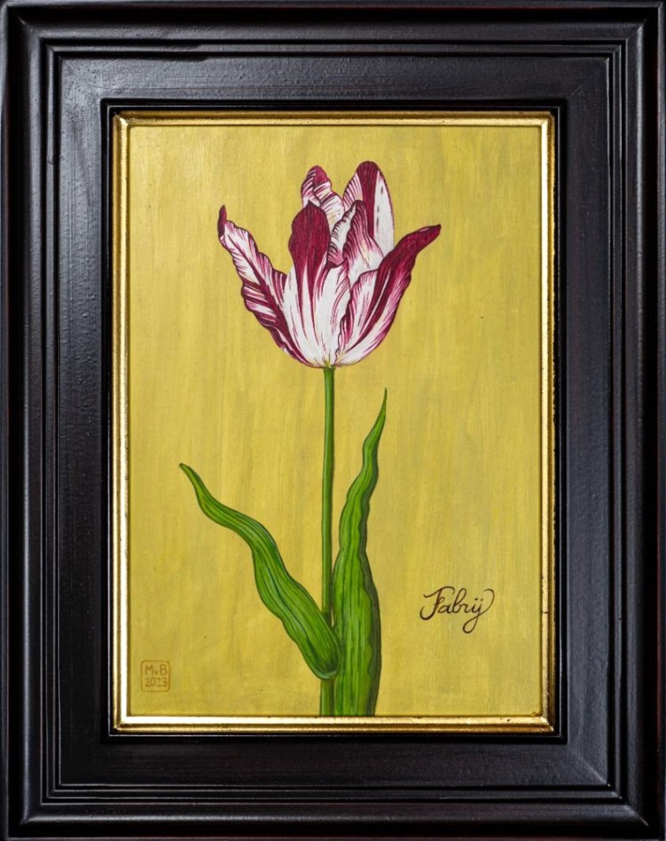 However, we can speculate that ‘Fabrij’ (fabric), given the context of that time, may refer to the world of luxury and fine fabrics. It was an era when textiles were one of the most valuable commodities. The fine lines of the “Fabrij” tulip evoke the threads of expensive fabrics. The pattern of the tulip petals could even be compared to the patterns on damast, a luxurious and expensive fabric popular in the 17th century.