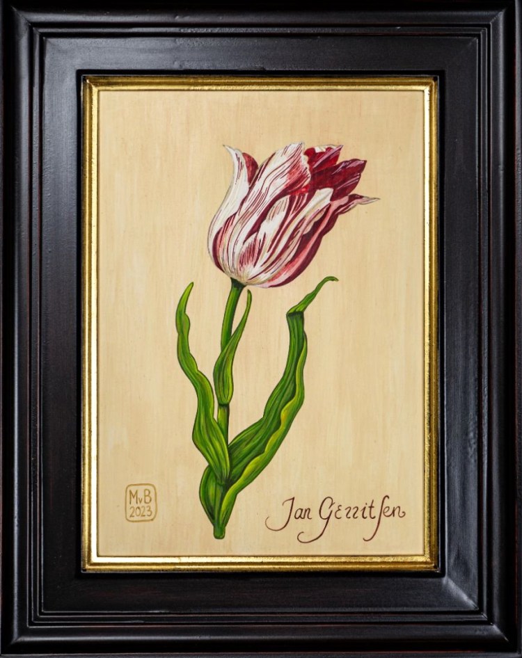 This tulip may have been named after the grower himself or another person who played a significant role in his life or career. This was a common practice in the 17th century. Despite knowing little about the person behind the name, the tulip “Jan Gerritsen” reminds us of the people, often ordinary citizens, who contributed to the flourishing of the Tulipmania.
