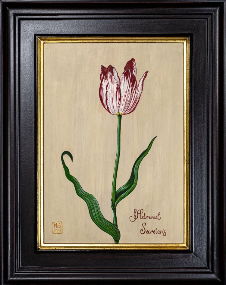 The tulip has survived history thanks to the Great Tulip Book: where an image survived of the Admirael Secretaris at the Norton Simon Art Foundation.